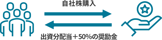 毎月の給与から5万円を自社株購入の資金に充てた場合、会社から2.5万円が支給され、
