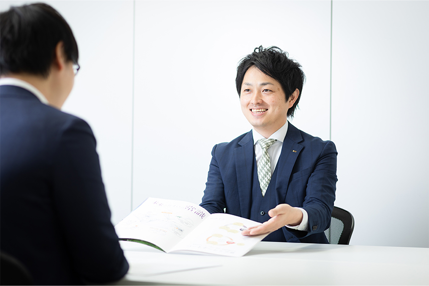 オーナーさまにサブリースのメリットや物件の運用プランについて提案し、ご契約いただくことが私の役割ですので、オーナーさまと面談させていただく機会は非常に多いです。まず私が意識しているのがオーナーさまのご状況を伺うことです。なぜなら今後のビジョンによってお手伝いできる分野が変わってきますし、押し売りをしたいわけではないので、状況のヒアリングは最初に行います。